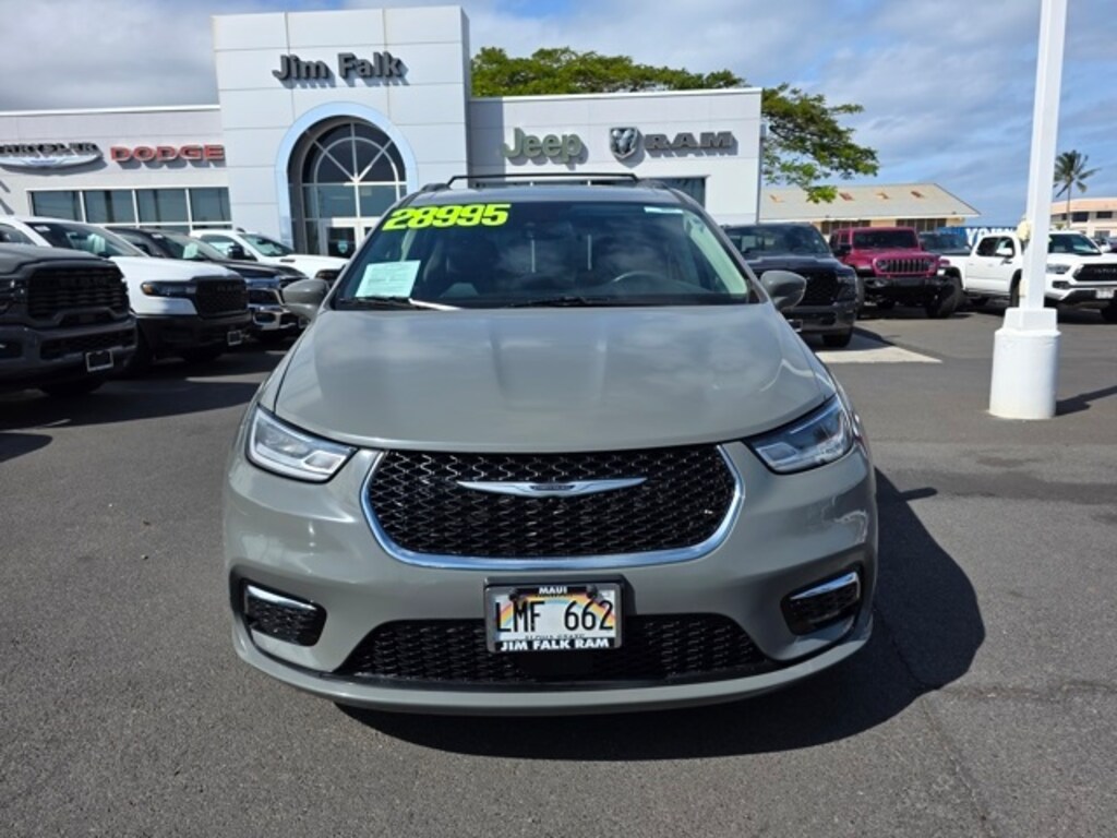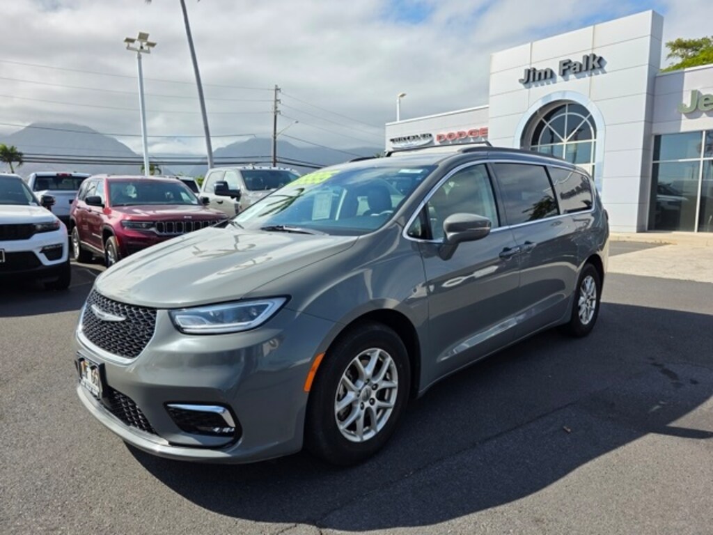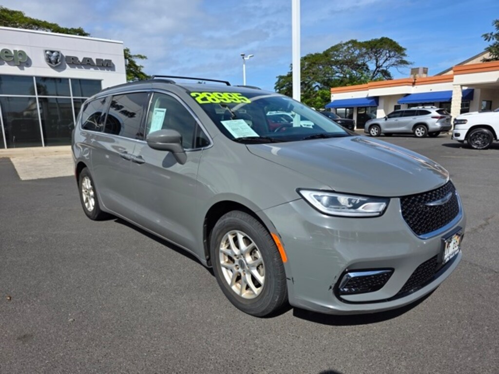 This Chrysler Pacifica has many features and is well equipped including 10.1" Touchscreen Display, 17" x 7.0" Aluminum Wheels, 3.25 Axle Ratio, 3rd row seats: split-bench, 4-Wheel Disc Brakes, 6 Speakers, ABS brakes, Air Conditioning, Alloy wheels, AM/FM radio: SiriusXM, Apple CarPlay, Apple CarPlay/Android Auto, Auto-dimming Rear-View mirror, Automatic temperature control, Brake assist, Bumpers: body-color, Compass, Delay-off headlights, Disassociated Touchscreen Display, Driver door bin, Driver vanity mirror, Driver's Seat Mounted Armrest, Dual front impact airbags, Dual front side impact airbags, Electronic Stability Control, For More Info, Call 800-643-2112, Four wheel independent suspension, Front anti-roll bar, Front Bucket Seats, Front dual zone A/C, Front fog lights, Front reading lights, Fully automatic headlights, Garage door transmitter, Google Android Auto, GPS Antenna Input, Heated door mirrors, Heated front seats, Heated steering wheel, Illuminated entry, Integrated Active Noise Cancellation, Integrated Center Stack Radio, Knee airbag, Low tire pressure warning, Memory seat, Occupant sensing airbag, Outside temperature display, Overhead airbag, Overhead console, Panic alarm, Passenger door bin, Passenger seat mounted armrest, Passenger vanity mirror, Perforated Leather Trim Bucket Seats, Power door mirrors, Power driver seat, Power Liftgate, Power steering, Power windows, Radio data system, Radio: Uconnect 5 w/10.1" Display, Rain sensing wipers, Rear air conditioning, Rear reading lights, Rear window defroster, Rear window wiper, Reclining 3rd row seat, Remote keyless entry, Roof rack, Security system, SiriusXM Radio Service, SiriusXM Satellite Radio, Speed control, Split folding rear seat, Spoiler, Steering wheel mounted audio controls, Tachometer, Telescoping steering wheel, Tilt steering wheel, Touring Suspension, Traction control, Trip computer, Turn signal indicator mirrors, USB Host Flip, Variably intermittent wipers, and Voltmeter. Ceramic Gray Clearcoat 2022 Chrysler Pacifica Touring L FWD 9-Speed 948TE Automatic 3.6L V6 24V VVT