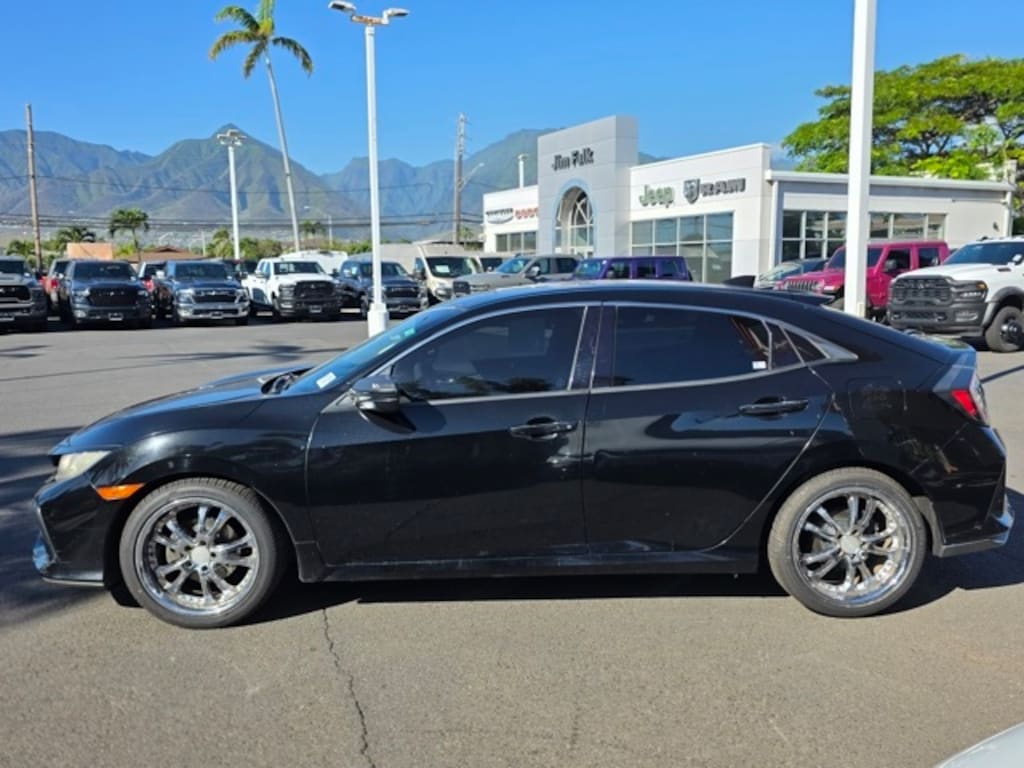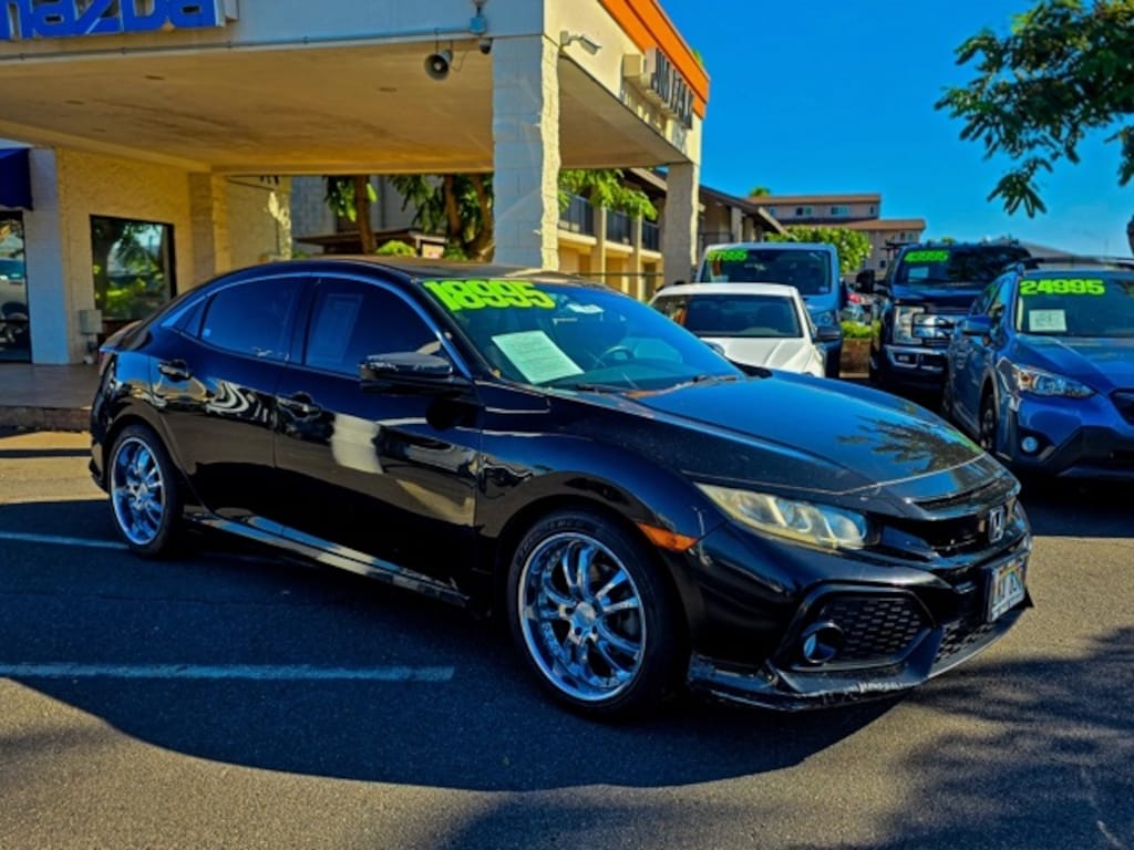 This Honda Civic has many features and is well equipped including Cloth, 4-Wheel Disc Brakes, 8 Speakers, ABS brakes, Air Conditioning, Alloy wheels, AM/FM radio: SiriusXM, Apple CarPlay/Android Auto, Automatic temperature control, Brake assist, Bumpers: body-color, Compass, Delay-off headlights, Driver door bin, Driver vanity mirror, Dual front impact airbags, Dual front side impact airbags, Electronic Stability Control, Emergency communication system: HondaLink, Exterior Parking Camera Rear, Fabric Seating Surfaces, Four wheel independent suspension, Front anti-roll bar, Front Bucket Seats, Front Center Armrest, Front dual zone A/C, Front fog lights, Front reading lights, Fully automatic headlights, Heated door mirrors, Illuminated entry, Low tire pressure warning, Occupant sensing airbag, Outside temperature display, Overhead airbag, Panic alarm, Passenger door bin, Passenger vanity mirror, Power door mirrors, Power moonroof, Power steering, Power windows, Radio data system, Radio: 180-Watt AM/FM/HD/SiriusXM Audio System, Rear anti-roll bar, Rear seat center armrest, Rear window defroster, Rear window wiper, Reclining Front Bucket Seats, Remote keyless entry, Security system, Speed control, Speed-sensing steering, Split folding rear seat, Spoiler, Steering wheel mounted audio controls, Tachometer, Telescoping steering wheel, Tilt steering wheel, Traction control, Trip computer, and Variably intermittent wipers. Black 2018 Honda Civic EX FWD CVT 1.5L I4 DOHC 16V Cloth.