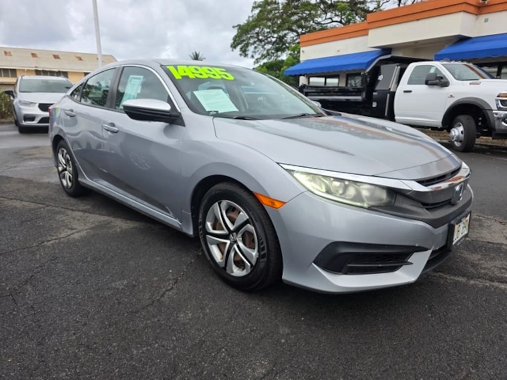This Honda Civic has many features and is well equipped including Cloth, 16" Wheels w/Full Covers, 4 Speakers, 4-Wheel Disc Brakes, ABS brakes, Air Conditioning, AM/FM radio, Automatic temperature control, Brake assist, Bumpers: body-color, Cloth Seat Trim, Compass, Delay-off headlights, Driver door bin, Driver vanity mirror, Dual front impact airbags, Dual front side impact airbags, Electronic Stability Control, Exterior Parking Camera Rear, Four wheel independent suspension, Front anti-roll bar, Front Bucket Seats, Front Center Armrest, Front reading lights, Fully automatic headlights, Illuminated entry, Low tire pressure warning, Occupant sensing airbag, Outside temperature display, Overhead airbag, Panic alarm, Passenger door bin, Passenger vanity mirror, Power door mirrors, Power steering, Power windows, Radio data system, Radio: 160-Watt AM/FM Audio System, Rear anti-roll bar, Rear window defroster, Reclining Front Bucket Seats, Remote keyless entry, Security system, Speed control, Speed-sensing steering, Steering wheel mounted audio controls, Tachometer, Telescoping steering wheel, Tilt steering wheel, and Traction control. Silver 2018 Honda Civic LX FWD CVT 2.0L I4 DOHC 16V i-VTEC Cloth.