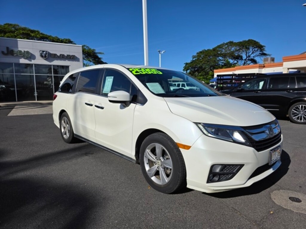 This Honda Odyssey has many features and is well equipped including 3rd row seats: split-bench, 4-Wheel Disc Brakes, 4.33 Axle Ratio, 7 Speakers, ABS brakes, Air Conditioning, Alloy wheels, AM/FM radio: SiriusXM, Anti-whiplash front head restraints, Apple CarPlay/Android Auto, Auto High-beam Headlights, Auto-dimming Rear-View mirror, Automatic temperature control, Blind Spot Information (BSI) System warning, Brake assist, Bumpers: body-color, Delay-off headlights, Driver door bin, Driver vanity mirror, Driver's Seat Mounted Armrest, Dual front impact airbags, Dual front side impact airbags, Electronic Stability Control, Emergency communication system: HondaLink, Exterior Parking Camera Rear, Four wheel independent suspension, Front anti-roll bar, Front Bucket Seats, Front dual zone A/C, Front fog lights, Front reading lights, Fully automatic headlights, Garage door transmitter: HomeLink, Heated door mirrors, Heated Front Bucket Seats, Heated front seats, Illuminated entry, Knee airbag, Leather Seat Trim, Leather steering wheel, Low tire pressure warning, Memory seat, Occupant sensing airbag, Outside temperature display, Overhead airbag, Overhead console, Panic alarm, Passenger door bin, Passenger seat mounted armrest, Passenger vanity mirror, Power door mirrors, Power driver seat, Power Liftgate, Power moonroof, Power passenger seat, Power steering, Power windows, Radio data system, Radio: 160-Watt AM/FM/HD/SiriusXM Audio System, Rear air conditioning, Rear anti-roll bar, Rear reading lights, Rear seat center armrest, Rear window defroster, Rear window wiper, Reclining 3rd row seat, Remote keyless entry, Security system, Speed control, Speed-sensing steering, Speed-Sensitive Wipers, Split folding rear seat, Spoiler, Steering wheel mounted audio controls, Tachometer, Telescoping steering wheel, Tilt steering wheel, Traction control, Trip computer, Turn signal indicator mirrors, Variably intermittent wipers, and Wheels: 18" Silver-Painted Alloy. White Diamond Pearl 2018 Honda Odyssey EX-L FWD 9-Speed Automatic 3.5L V6 SOHC i-VTEC 24V