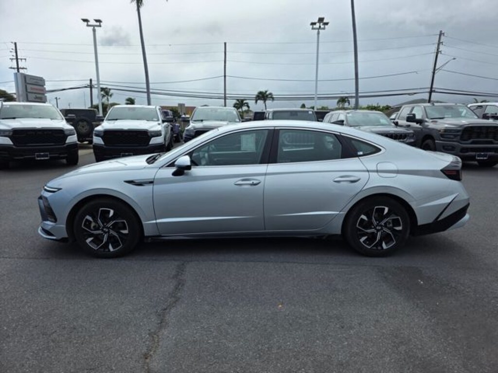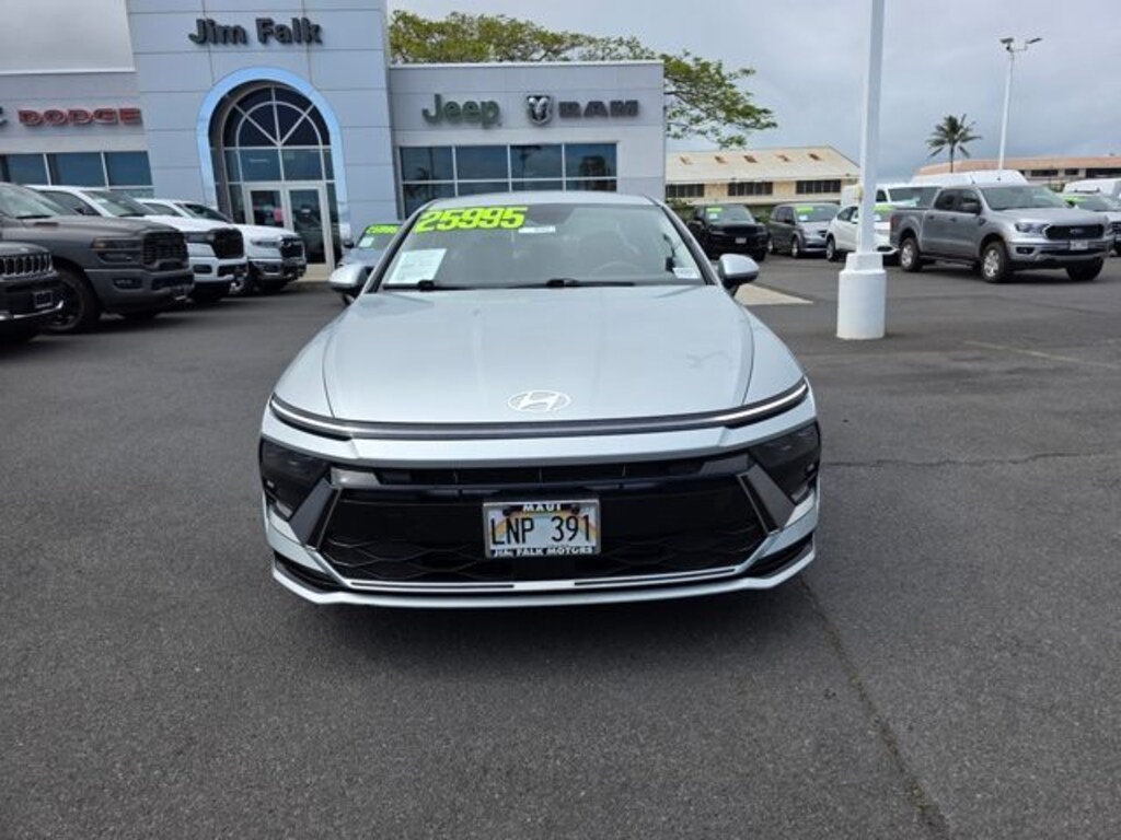 This Hyundai Sonata has many features and is well equipped including Option Group 01, Black Cloth, 17" x 7.0J Aluminum Alloy Wheels, 4-Wheel Disc Brakes, 6 Speakers, ABS brakes, Air Conditioning, Alloy wheels, AM/FM radio: SiriusXM, Apple CarPlay & Android Auto, Auto High-beam Headlights, Automatic temperature control, Brake assist, Bumpers: body-color, Delay-off headlights, Driver door bin, Driver vanity mirror, Dual front impact airbags, Dual front side impact airbags, Electronic Stability Control, Emergency communication system: Bluelink, Exterior Parking Camera Rear, Four wheel independent suspension, Front anti-roll bar, Front Bucket Seats, Front Center Armrest, Front dual zone A/C, Front reading lights, Fully automatic headlights, Heated door mirrors, Heated Front Bucket Seats, Heated front seats, Illuminated entry, Knee airbag, Low tire pressure warning, Occupant sensing airbag, Outside temperature display, Overhead airbag, Overhead console, Panic alarm, Passenger door bin, Passenger vanity mirror, Power door mirrors, Power driver seat, Power steering, Power windows, Premium Cloth Seating Surfaces, Radio data system, Radio: AM/FM/HD/SiriusXM, Rear anti-roll bar, Rear seat center armrest, Rear side impact airbag, Rear window defroster, Remote keyless entry, Security system, Speed control, Speed-sensing steering, Speed-Sensitive Wipers, Split folding rear seat, Steering wheel mounted audio controls, Tachometer, Telescoping steering wheel, Tilt steering wheel, Traction control, Trip computer, and Variably intermittent wipers. Aero Silver 2024 Hyundai Sonata SEL FWD 8-Speed Automatic I4 Black Cloth.