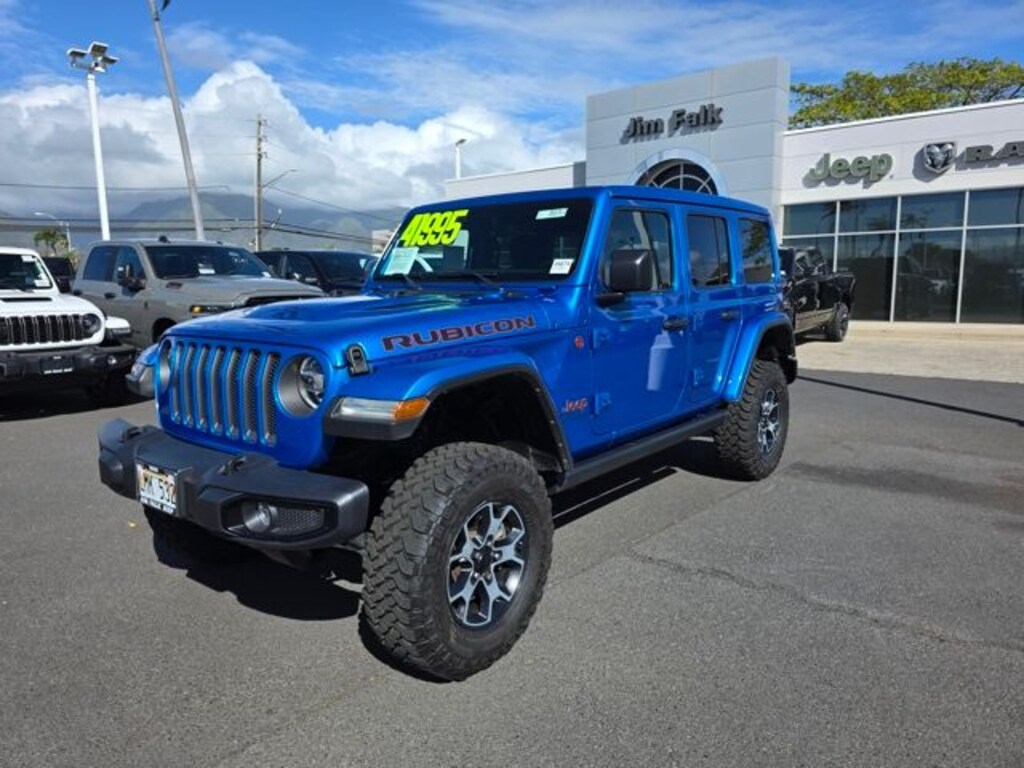 This Jeep Wrangler has many features and is well equipped including LED Lighting Group (Daytime Running Lamps LED Accents, Front LED Fog Lamps, LED Premium Reflector Headlamps, and LED Taillamps), Quick Order Package 25R, Safety Group (Blind Spot & Cross Path Detection and ParkSense Rear Park Assist System), Steel Bumper Group (Steel Front Bumper and Steel Rear Bumper), 4-Wheel Disc Brakes, 4.10 Rear Axle Ratio, 9 Speakers, ABS brakes, Air Conditioning, Alloy wheels, AM/FM radio: SiriusXM, Apple CarPlay/Android Auto, Auto-dimming Rear-View mirror, Automatic temperature control, Aux Battery, Body Color Rubicon Highline Flare, Brake assist, Compass, Delay-off headlights, Driver door bin, Driver vanity mirror, Dual front impact airbags, Dual front side impact airbags, Electronic Stability Control, Emergency communication system: SiriusXM Guardian, Engine Oil Cooler, Front anti-roll bar, Front Bucket Seats, Front Center Armrest w/Storage, Front dual zone A/C, Front fog lights, Front License Plate Bracket, Front reading lights, Fully automatic headlights, Garage door transmitter, Heated door mirrors, Illuminated entry, Integrated roll-over protection, Leather steering wheel, Low tire pressure warning, Navigation System, Non-Lock Fuel Cap w/o Discriminator, Occupant sensing airbag, Outside temperature display, Panic alarm, ParkView Rear Back-Up Camera, Passenger door bin, Passenger vanity mirror, Performance Suspension, Power door mirrors, Power steering, Power Top Quarter Window Storage Bag, Power windows, Premium Cloth Low-Back Bucket Seats, Radio data system, Radio: Uconnect 4C Nav w/8.4" Display, Rear anti-roll bar, Rear reading lights, Rear Window Defroster, Rear Window Wiper/Washer, Remote keyless entry, Removable Rear Quarter Windows, Security system, Sky 1-Touch Power Top, Speed control, Split folding rear seat, Steering wheel mounted audio controls, Stop-Start Dual Battery System, Tachometer, Telescoping steering wheel, Tilt steering wheel, Traction control, Trip computer, Variably intermittent wipers, Voltmeter, and Wheels: 17" x 7.5" Machined w/Black Pockets. Hydro Blue Pearl Coat 2022 Jeep Wrangler Unlimited Rubicon 4WD 8-Speed Automatic 3.6L V6 24V VVT